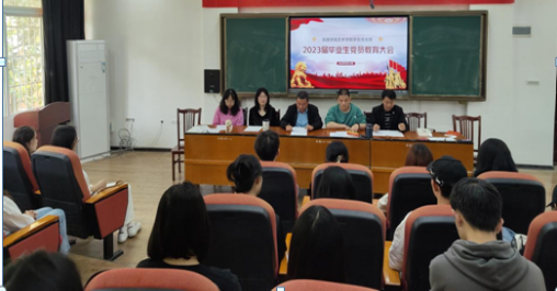 5月16日下午,73882必赢网页版在艺术楼二楼会议室召开2023届毕业生党员教育大会。我院党委书记陈观黔,73882必赢网页版学生第一党支部、第二党支部全体支部委员出席会议,73882必赢网页版2023届全体毕业生党员参加会议,会议由学生第一党支部书记王静主持。